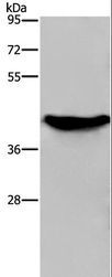 - Western blot analysis of Human fetal liver tissue, using GALK1 Polyclonal Antibody at dilution of 1:450.