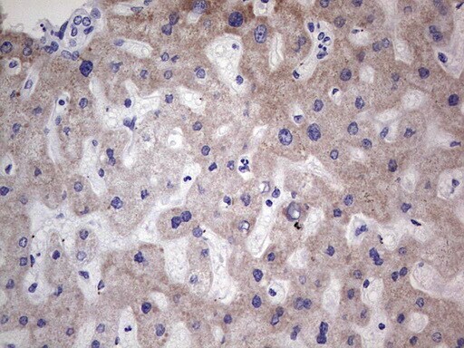 - Immunohistochemistry was performed on paraffin-embedded human liver tissue. To expose target proteins, 1 mM EDTA in 10mM Tris, pH8.5, 120°C for 3min was used. Following antigen retrieval, tissues were probed with a NR1I3 monoclonal antibody (Product # MA5-26713).