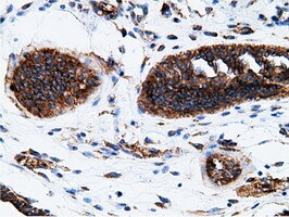 - IHC of paraffin-embedded Human breast tissue using anti-KHK mouse monoclonal antibody.