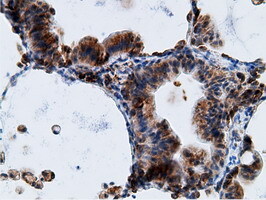 - IHC of paraffin-embedded Human lung tissue using anti-KHK mouse monoclonal antibody.