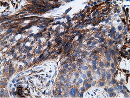 - IHC of paraffin-embedded Carcinoma of Human bladder tissue using anti-KHK mouse monoclonal antibody.