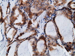 - IHC of paraffin-embedded Carcinoma of Human thyroid tissue using anti-KHK mouse monoclonal antibody.
