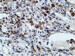 - IHC of paraffin-embedded Carcinoma of Human kidney tissue using anti-KHK mouse monoclonal antibody.