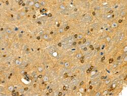 - Immunohistochemical analysis of CRP1 in Rat brain tissue using a CRP1 polyclonal antibody (Product # PA5-118824). The sample was formaldehyde fixed and a heat mediated antigen retrieval step in citrate buffer was performed. The sample was then blocked and incubated with the primary antibody at 4°C overnight. An HRP conjugated anti-Rabbit antibody was used as the secondary antibody.