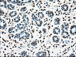 - IHC of paraffin-embedded breast tissue using anti-TYRO3 mouse monoclonal antibody. (Dilution 1:50).
