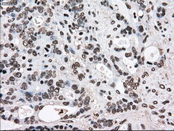 - IHC of paraffin-embedded Adenocarcinoma of breast tissue using anti-TYRO3 mouse monoclonal antibody. (Dilution 1:50).