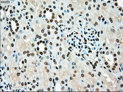 - IHC of paraffin-embedded Kidney tissue using anti-TYRO3 mouse monoclonal antibody. (Dilution 1:50).