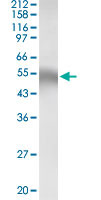 - Western blot analysis of human SLC45A3 in LNCaP cells with SLC45A3 polyclonal antibody (Cat # PAB1012) at a 1 : 500 dilution.