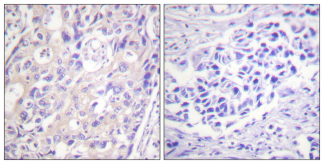 - Immunohistochemistry analysis of paraffin-embedded human breast carcinoma, using p90 RSK (Phospho-Thr359+Ser363) Antibody. The picture on the right is blocked with the phospho peptide.