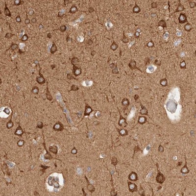 - Immunohistochemistry-Paraffin: RRP15 Antibody [NBP1-84522] - Staining of human cerebral cortex shows strong cytoplasmic positivity in neuronal cells.