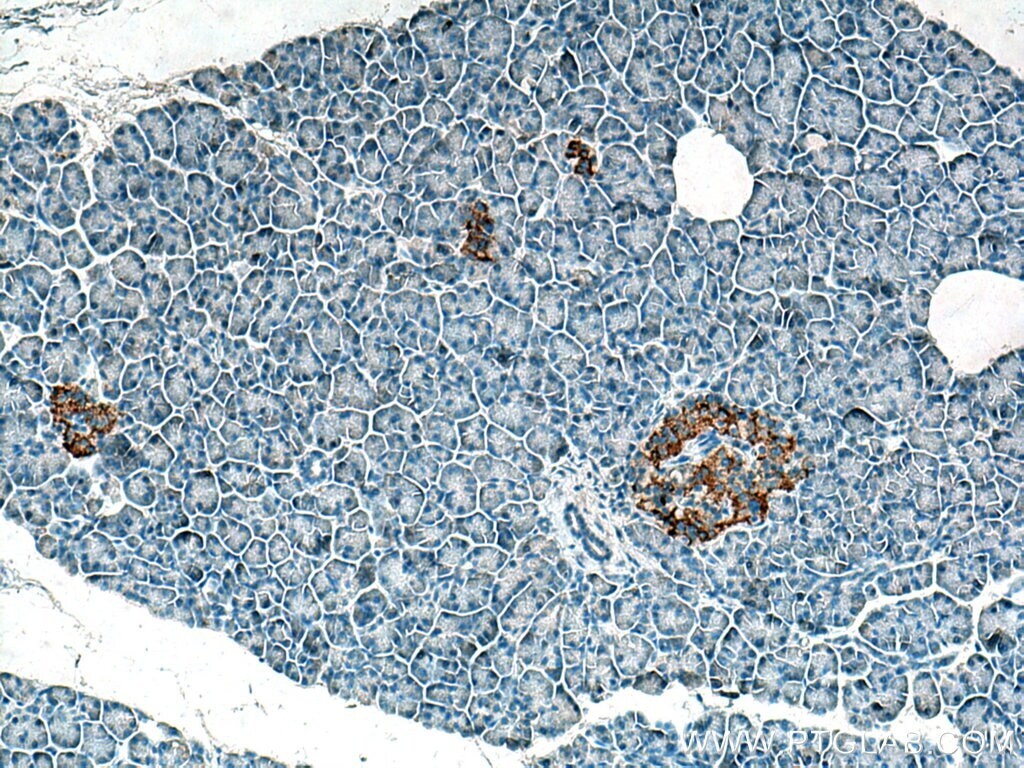 - Immunohistochemical analysis of paraffin-embedded human pancreas tissue slide using (Product # 12610-1-AP) (ACVR1C antibody) at dilution of 1:200 (under 10x lens). Heat mediated antigen retrieval with Tris-EDTA buffer (pH 9.0).
