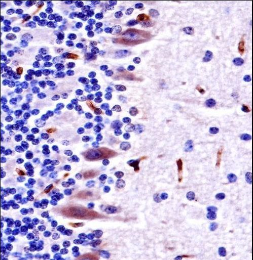 - Mouse Mlk4 Antibody immunohistochemistry of formalin-fixed and paraffin-embedded mouse cerebellum tissue followed by peroxidase-conjugated secondary antibody and DAB staining.