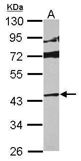 - Sample (30 ug of whole cell lysate) A: HepG2 10% SDS PAGE GTX112033 diluted at 1:1000