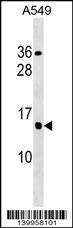 - YQ013 Antibody (Center) western blot analysis in A549 cell line lysates (35ug/lane).This demonstrates the YQ013 antibody detected the YQ013 protein (arrow).