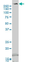 - TRIO polyclonal antibody (A01), Lot # ABNOVA060705QCS1 Western Blot analysis of TRIO expression in HeLa ( Cat # L013V1 ).