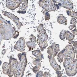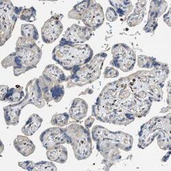 - Immunohistochemical staining of SQRDL in human placenta using SQRDL Polyclonal Antibody (Product # PA5-53549) shows low expression as expected.