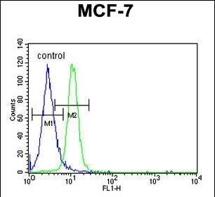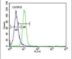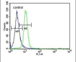 - Flow cytometry of PSG7 in MCF-7 cells (right histogram). Samples were incubated with PSG7 polyclonal antibody (Product # PA5-24864) followed by FITC-conjugated goat-anti-rabbit secondary antibody. Negative control cell (left histogram).