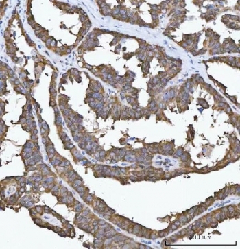 - IHC staining of FFPE human ovarian cancer tissue with Delta-5 desaturase antibody. HIER: boil tissue sections in pH8 EDTA for 20 min and allow to cool before testing.