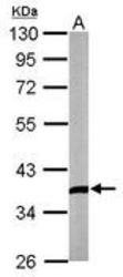 - Sample (30 ug of whole cell lysate). A: A549. 10% SDS PAGE. DKK3 antibody diluted at 1:1000.