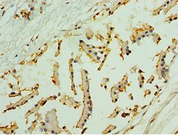 - Immunohistochemistry of paraffin-embedded human placenta using antibody at 1:100 dilution.