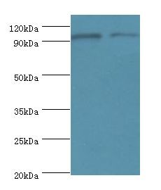 - Western blot. All lanes: NLGN4Y antibody at 6 ug/ml. Lane 1: A549 whole cell lysate. Lane 2: mouse brain tissue. Secondary antibody: Goat polyclonal to rabbit at 1:10000 dilution. Predicted band size: 92 kDa. Observed band size: 92 kDa Immunohistochemistry.