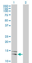 - Western Blot analysis of NLGN4Y expression in transfected 293T cell line (H00022829-T02) by NLGN4Y MaxPab polyclonal antibody.Lane 1: NLGN4Y transfected lysate(15.20 KDa).Lane 2: Non-transfected lysate.