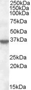 - Goat Anti-Annexin I Antibody (1µg/ml) staining of Pig Spleen lysate (35µg protein in RIPA buffer). Primary incubation was 1 hour. Detected by chemiluminescencence.