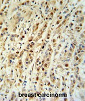 - CABLES1 Antibody (C-term) (Cat. #AP50701PU-N) IHC analysis in formalin fixed and paraffin embedded breast carcinoma followed by peroxidase conjugation of the secondary antibody and DAB staining. This data demonstrates the use of the CABLES1 Antibody (C-term) for immunohistochemistry. Clinical relevance has not been evaluated.