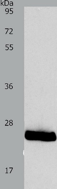 - Predicted band size: 33kDa. Positive control: Mouse trachea tissue lysate. Recommended dilution: 1/500-2000. (Gel: 10%SDS-PAGE Lysate: 40 ug Primary antibody: 1/800 dilution Secondary antibody: Goat anti Rabbit IgG - H&L (HRP) at 1/8000 dilution Exposure time: 20 seconds)
