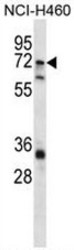 - ST6GALNAC1 Antibody (N-term) western blot analysis in NCI-H460 cell line lysates (35ug/lane).This demonstrates the ST6GALNAC1 antibody detected the ST6GALNAC1 protein (arrow).