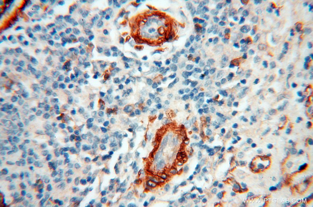 - Immunohistochemical of paraffin-embedded human spleen using 17564-1-AP(CD146, MCAM antibody) at dilution of 1:100 (under 10x lens)