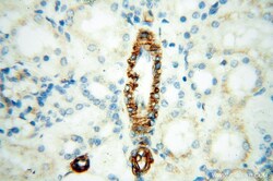 - Immunohistochemistry of paraffin-embedded human kidney using 17564-1-AP (CD146/MCAM antibody) at dilution of 1:100 (under 10x lens).