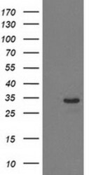 - HEK293T cells were transfected with the pCMV6-ENTRY control (Left lane) or pCMV6-ENTRY HDHD2 (RC205967, Right lane) cDNA for 48 hrs and lysed. Equivalent amounts of cell lysates (5 µg per lane) were separated by SDS-PAGE and immunoblotted with anti-HDHD2. Positive lysates LY403144 (100 µg) and LC403144 (20 µg) can be purchased separately from OriGene.