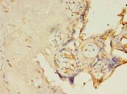 - Immunohistochemistry of paraffin-embedded human placenta using antibody at dilution of 1:100.