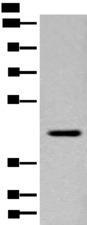 - Western blot analysis of Human placenta tissue lysate using FAM105A Polyclonal Antibody at dilution of 1:400
