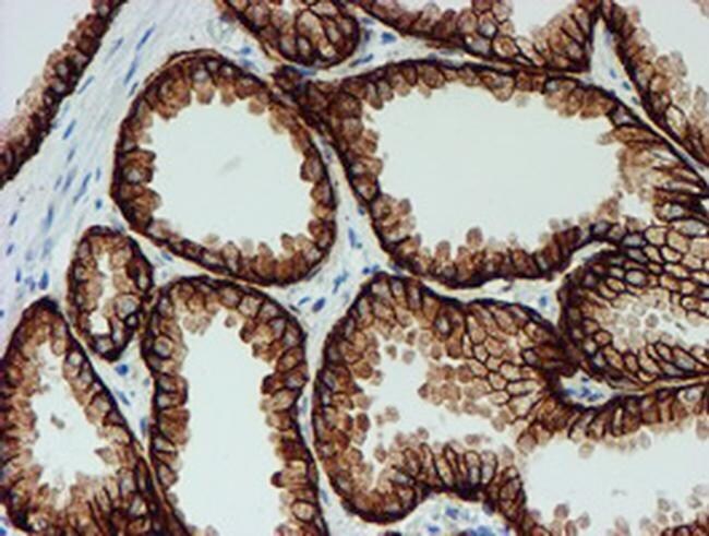 - Immunohistochemical staining of paraffin-embedded Carcinoma of Human prostate tissue using anti-FXYD3 mouse monoclonal antibody. (Heat-induced epitope retrieval by 10mM citric buffer, pH6.0, 100°C for 10min, TA504717)