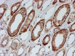 - Immunohistochemical staining of paraffin-embedded human Kidney tissue within the normal limits using anti-FXYD3 mouse monoclonal antibody. (Heat-induced epitope retrieval by 10mM citric buffer, pH6.0, 100°C for 10min, TA504717)