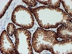 - Immunohistochemical staining of paraffin-embedded human prostate tissue within the normal limits using anti-FXYD3 mouse monoclonal antibody. (Heat-induced epitope retrieval by 10mM citric buffer, pH6.0, 100°C for 10min, TA504717)