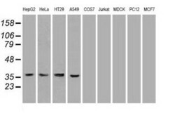 - Western blot analysis of extracts (35 µg) from 9 different cell lines by using anti-PDX1 monoclonal antibody.