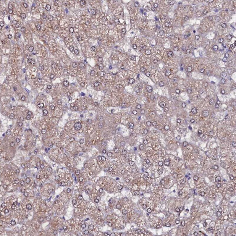 - Immunohistochemical analysis of USPL1 in human liver using USPL1 Polyclonal Antibody (Product # PA5-58745) shows weak cytoplasmic positivity in hepatocytes.