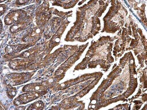 - FLAP Polyclonal Antibody detects FLAP protein at cytosol on mouse intestine by immunohistochemical analysis. Sample: Paraffin-embedded mouse intestine. FLAP Polyclonal Antibody (Product # PA5-78368) dilution: 1:500. Antigen Retrieval: EDTA based buffer, pH 8.0, 15 min.