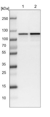 - Western Blot: HSPH1/HSP105 Antibody [NBP1-89662] - Lane 1: NIH-3T3 cell lysate (Mouse embryonic fibroblast cells). Lane 2: NBT-II cell lysate (Rat Wistar bladder tumor cells).