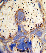 - Formalin-fixed and paraffin-embedded human placenta with CPZ Antibody (N-term), which was peroxidase-conjugated to the secondary antibody, followed by DAB staining. This data demonstrates the use of this antibody for immunohistochemistry; clinical relevance has not been evaluated.