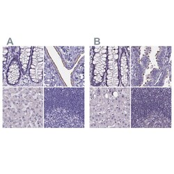- Immunohistochemical staining of SPEF2 in human colon, fallopian tube, liver and lymph node using SPEF2 Polyclonal Antibody (Product # PA5-58854) (A) shows similar protein distribution across tissues to an independent SPEF2 Polyclonal Antibody (B).