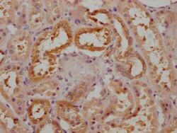 - Immunohistochemistry (Paraffin) analysis of SPEF2 using SPEF2 Polyclonal Antibody (Product # PA5-121470) at a dilution of 1:200 in human kidney tissue performed on a Leica BondTM system. After dewaxing and hydration, antigen retrieval was mediated by high pressure in a citrate buffer (pH 6.0). Section was blocked with 10% normal goat serum 30 min at RT. Then primary antibody (1% BSA) was incubated at 4°C overnight. The primary is detected by a Goat anti-rabbit polymer IgG labeled by HRP and visualized using 0.05% DAB.