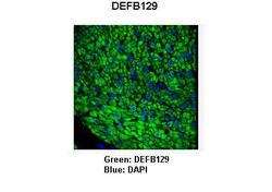 - The immunogen is a synthetic peptide directed towards the C-terminal region of Human DEFB129