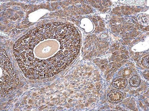 - AMH antibody detects AMH protein at cytosol on mouse ovary by immunohistochemical analysis. Sample: Paraffin-embedded mouse ovary. AMH antibody (GTX129593) dilution: 1:500.