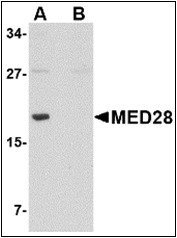 - MED28 antibody was raised against a 17 amino acid peptide from near the center of human MED28.