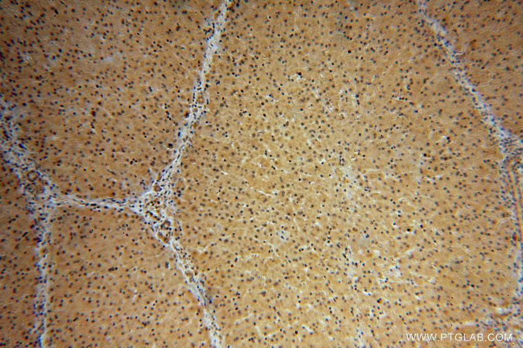- Immunohistochemical of paraffin-embedded human liver using 16018-1-AP(NAP1L4 antibody) at dilution of 1:100 (under 10x lens)