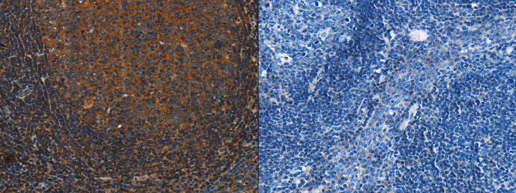 - The image on the left is immunohistochemistry of paraffin-embedded Human tonsil tissue using (ANXA2R Antibody) at dilution 1/25, on the right is treated with synthetic peptide. (Original magnification: ?200)